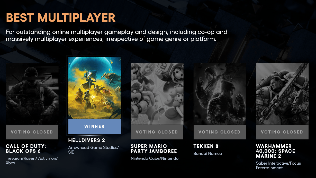 九游娱乐,九游娱乐官网,九游app,九游下载安卓,九游体育,九游,九游下载,九游体育娱乐,九游体育app,九游体育网页版,九游真人,九游棋牌,九游捕鱼,九游娱乐靠谱吗,九游体育官网,九游官网在TGA 2024斩获最佳多人游戏与最佳持续运营奖后,多人合作射击游戏《绝地潜兵2》无疑成为了今年游戏界的最大赢家之一。这款由Arrowhead开发的作品不仅赢得了两项TGA大奖,还在金摇杆奖中有所斩获,成为2024年最引人瞩目的热门游戏之一。